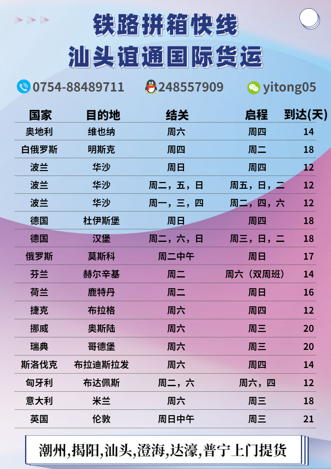 汕頭澄海潮州揭陽(yáng)到歐洲鐵路拼箱