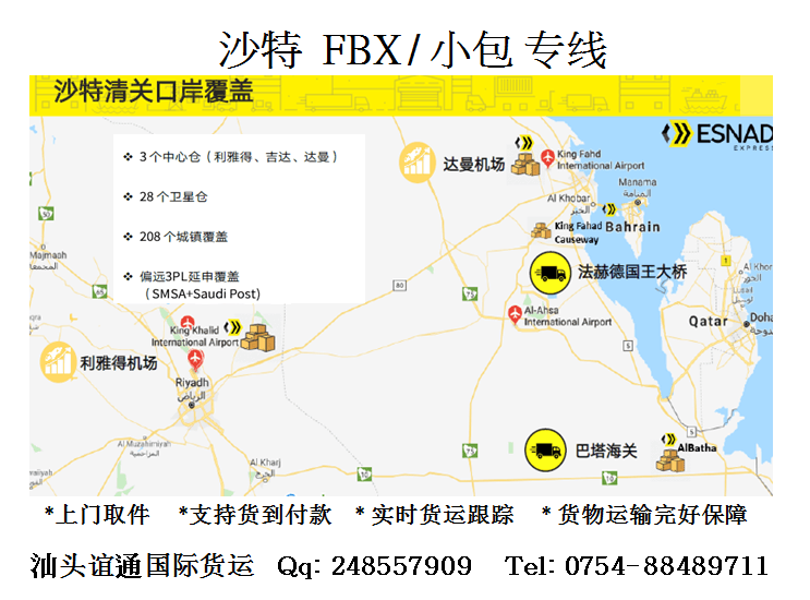 汕頭澄海潮州揭陽(yáng)到沙特FBA/小包專(zhuān)線